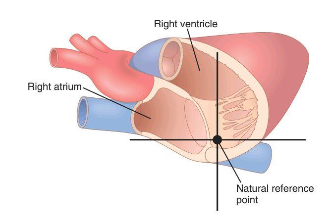 Reference point for circulatory pressure measurement (located near the tricuspid valve).