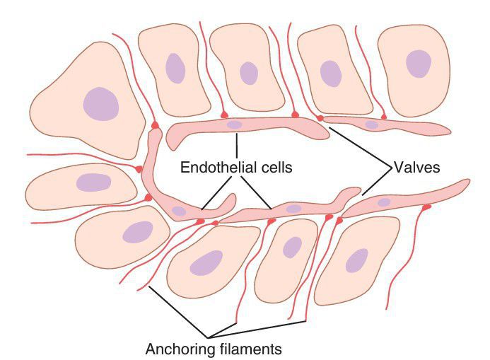 Special structure of the lymphatic capillaries that permits passage of substances of high molecular weight into the lymph.