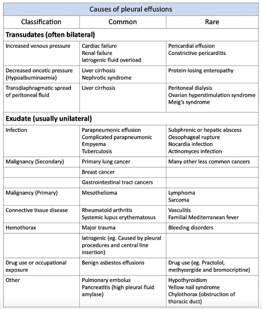 Causes of pleural effusion