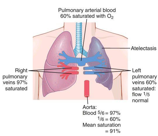 Effect of atelectasis on aortic blood oxygen (O2) saturation.