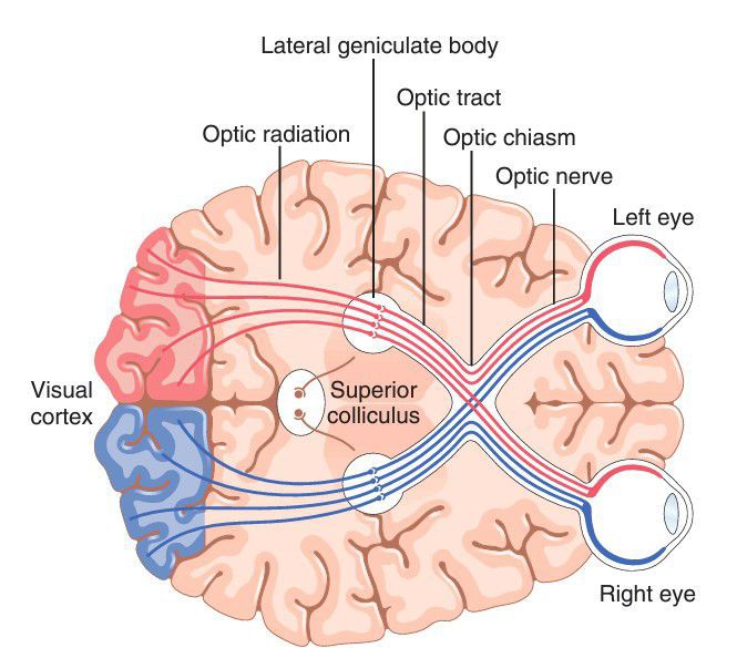 Principal visual pathways from the eyes to the visual cortex. (Modified from P