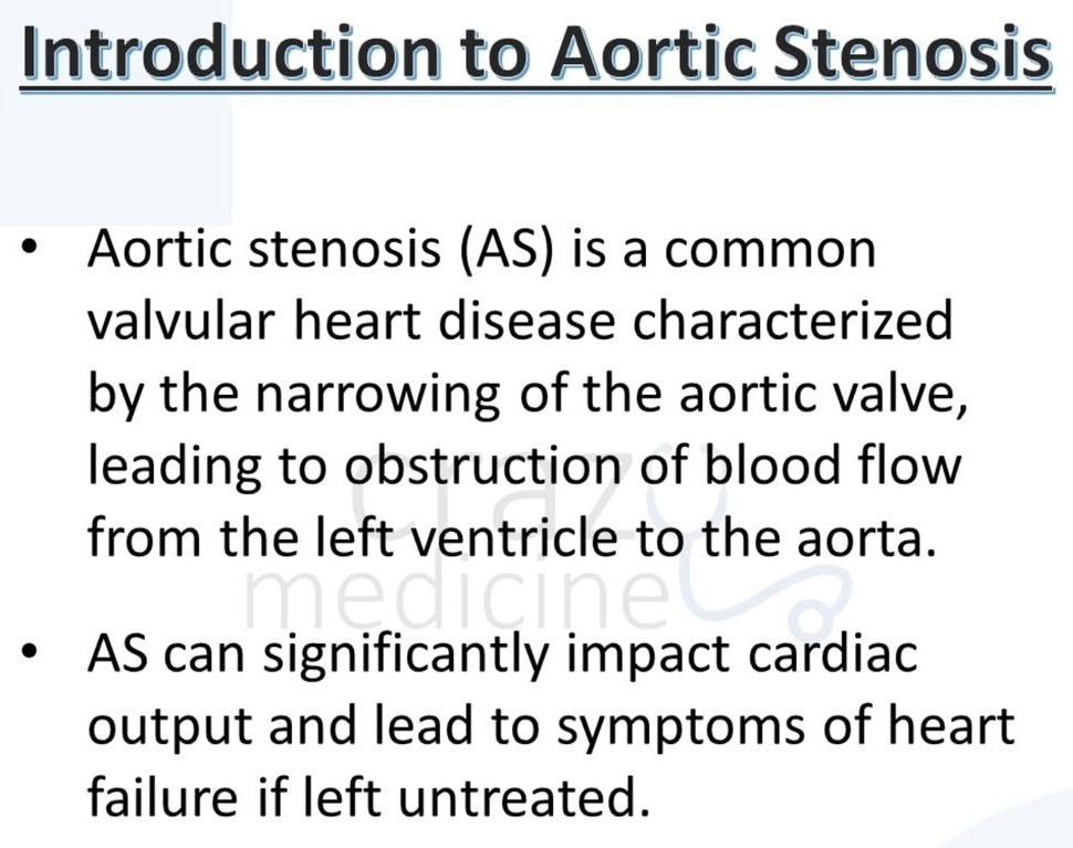 Aortic stenosis is the narrowing of the exit of the left ventricle of the heart, such that problems result. It may occur at the aortic valve as well as above and below this level. It typically gets worse over time. Symptoms often come on gradually with a decreased ability to exercise often occurring first.