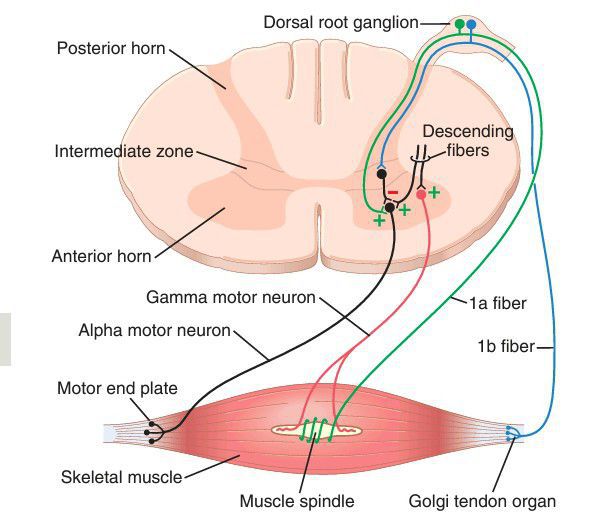 Peripheral sensory fibers and anterior motor neurons innervating skeletal muscle.