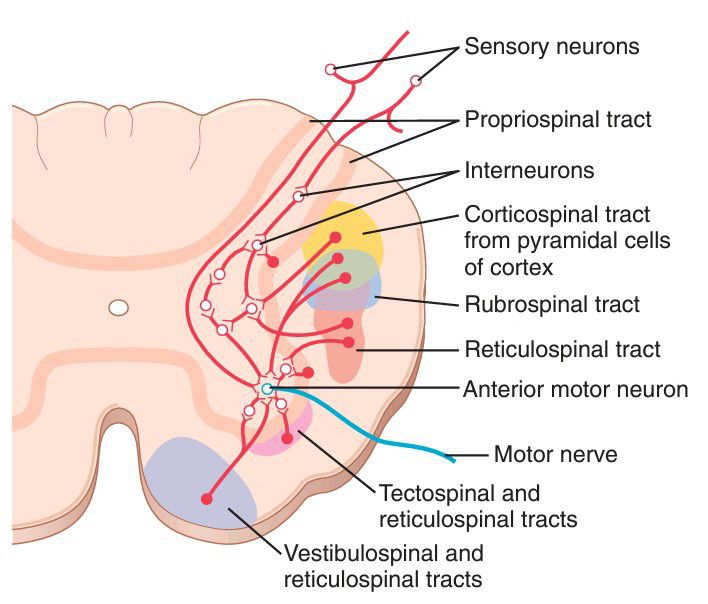 Convergence of different motor control pathways on the anterior motor neurons.