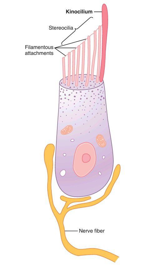 A hair cell of the equilibrium apparatus and its synapses with the vestibular nerve.