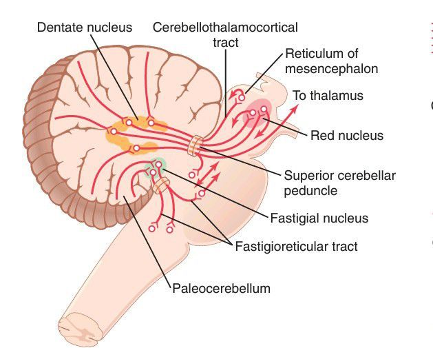 Principal efferent tracts from the cerebellu