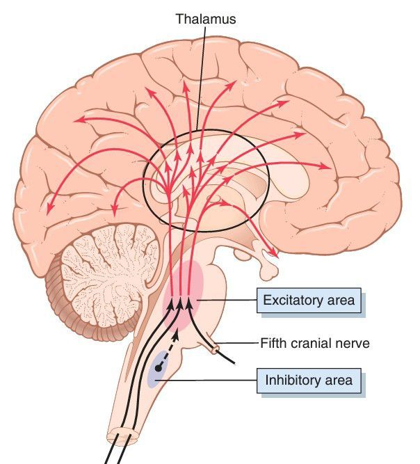 Also shown is an inhibitory area in the medulla that can inhibit or depress the activating system.