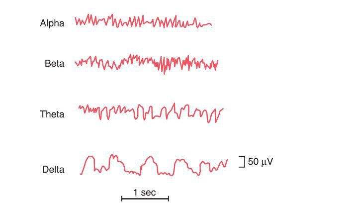 Different types of brain waves in the normal electroencephalogram.