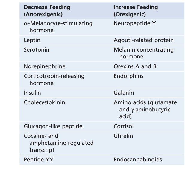 Neurotransmitters and Hormones That Influence Feeding and Satiety Centers in the Hypothalamus