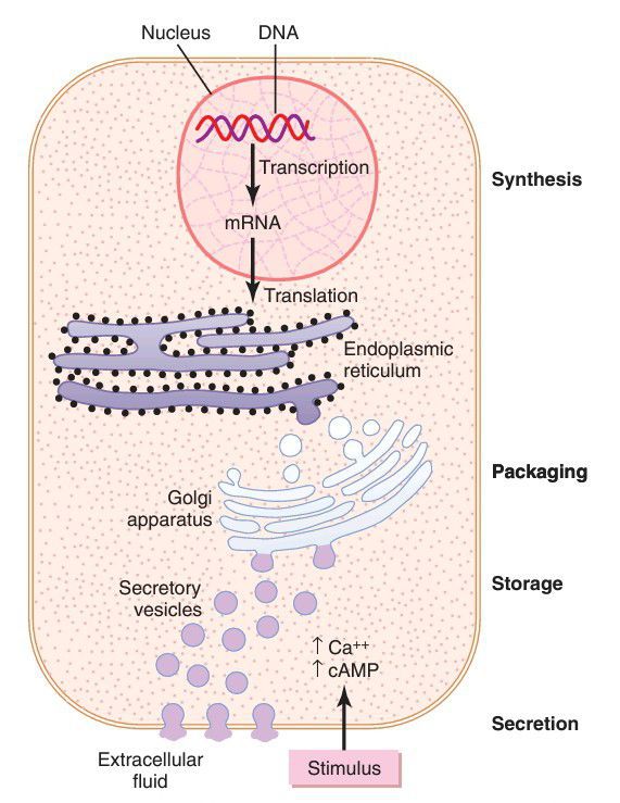 The stimulus for hormone secretion often involves changes in intracellular calcium or changes in cyclic adenosine monophosphate (cAMP) in the cell.