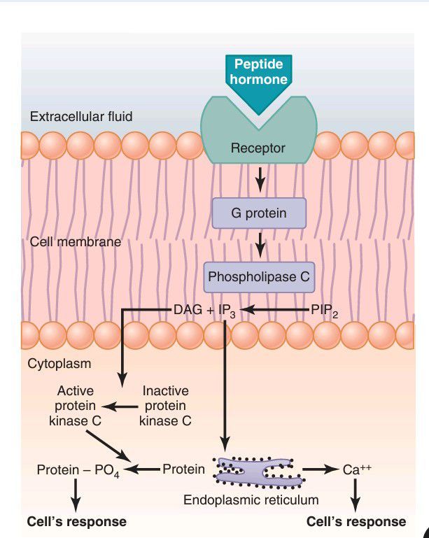 The cell membrane phospholipid second messenger system by which some hormones exert their control of cell function. DAG, diacylglycerol; IP3, inositol triphosphate; PIP2, phosphatidylinositol biphosphate.