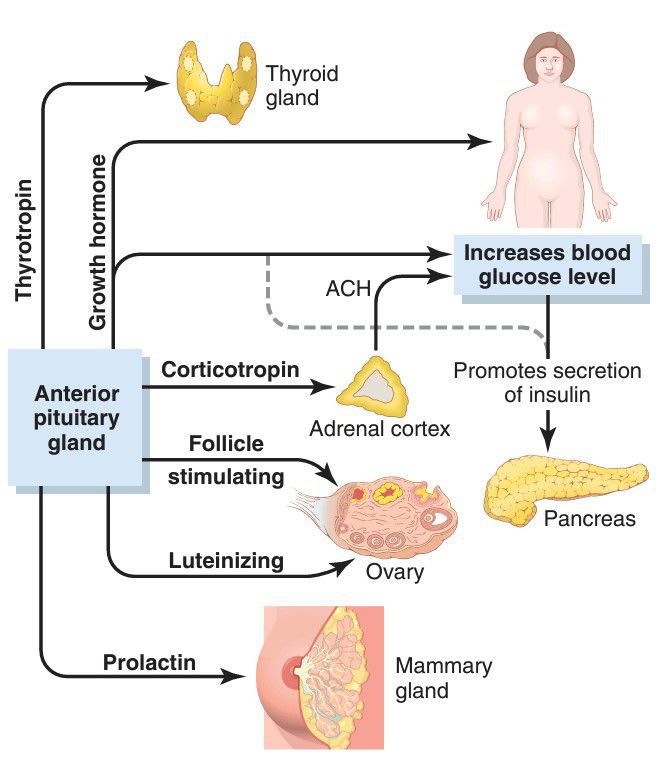 Metabolic functions of the anterior pituitary hormones. ACH, adrenal corticosteroid hormones.