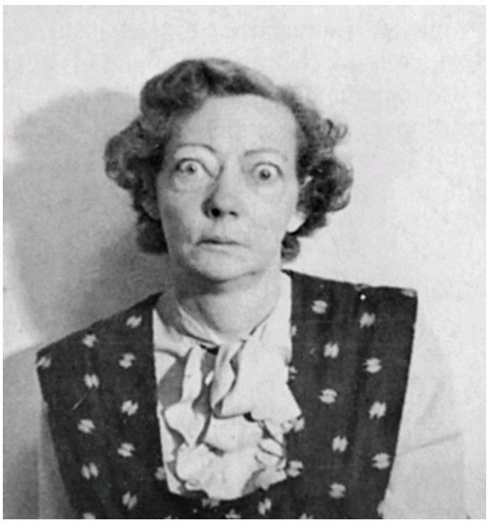 A patient with exophthalmic hyperthyroidism. Note protrusion of the eyes and retraction of the superior eyelids. Her basal metabolic rate was +40.