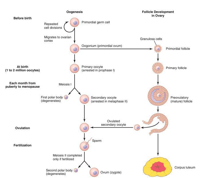 A developing egg (oocyte) differentiates into a mature egg (ovum) through a series of steps called oogenesis