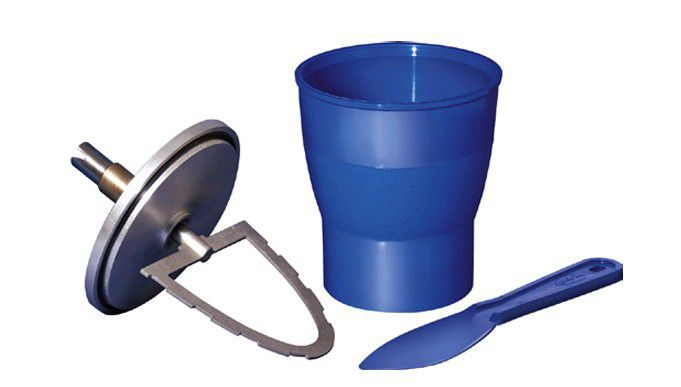 Flexible rubber mixing bowl and metal spatula with a stiff blade.
