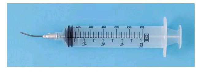 Large plastic syringes with an angled blunt tip may be used to deliver the irrigation solution to the operative site.