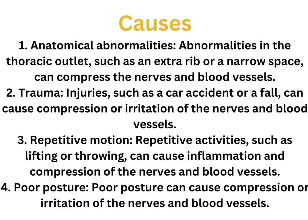 Thoracic outlet syndrome is a condition in which there is compression of the nerves, arteries, or veins in the superior thoracic aperture, the passageway from the lower neck to the armpit, also known as the thoracic outlet. There are three main types: neurogenic, venous, and arterial.