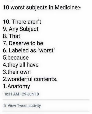 “10 worst subjects in MEDICINE”