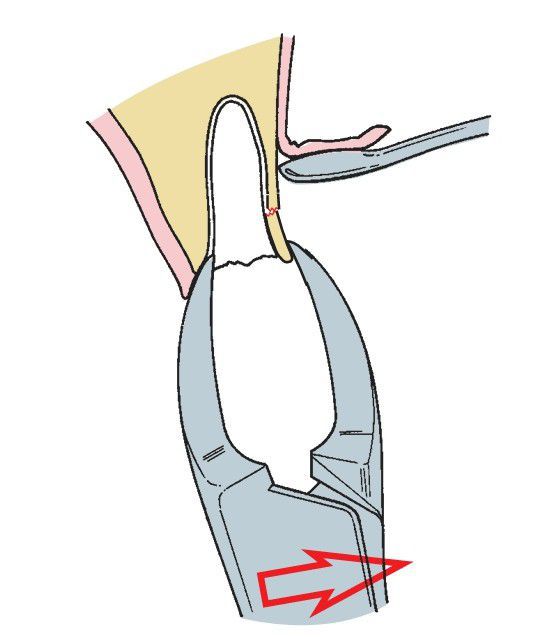 If the root is fractured at the level of bone, the buccal beak of the forceps can be used to remove a small portion of bone at the same time that the root is grasped.