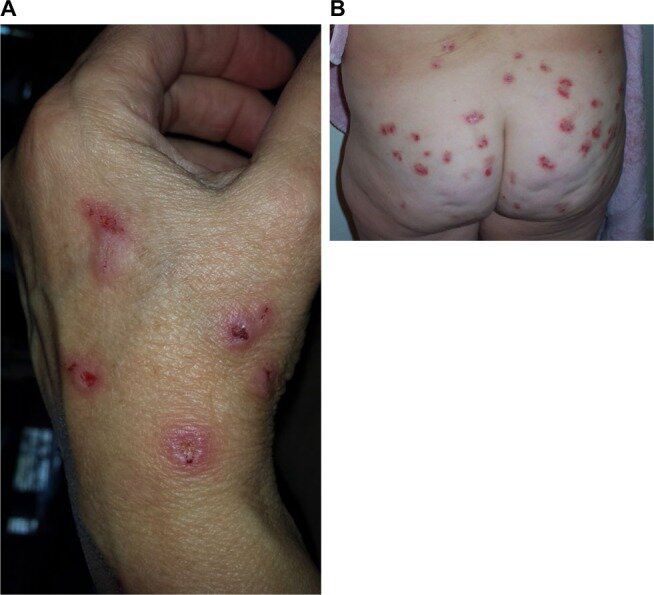 Morgellons disease is a rare skin condition involving the appearance of black, white, red, or blue fibers underneath or protruding from the skin. People living with Morgellons disease may also develop slow-healing ulcers on their skin. Other symptoms of Morgellons disease may include : chronic or severe fatigue.