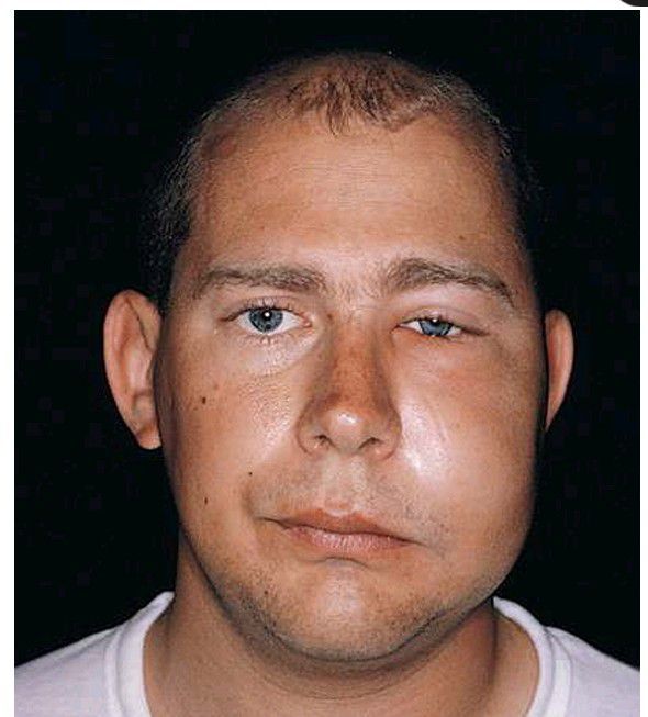 Extraction of impacted left maxillary and mandibular third molars was performed 2 days before this photograph was taken. The patient exhibits a moderate amount of facial edema, which resolved within 1 week of surgery.