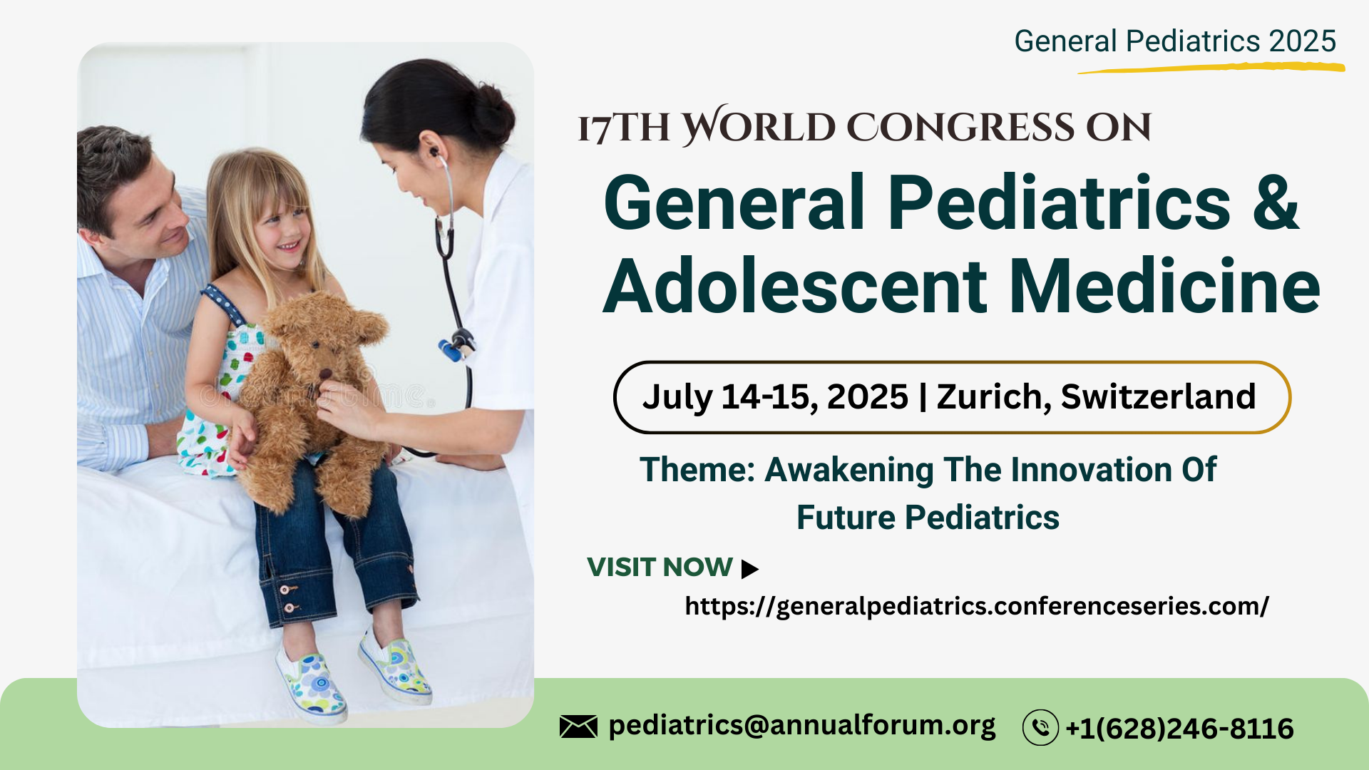 π’ Join Us at the 17th World Congress on General Pediatrics & Adolescent Medicine! π’ Iβm excited to invite you to the 17th World Congress on General Pediatrics & Adolescent Medicine, taking place on July 14-15, 2025, in Zurich, Switzerland! π¨πβ¨ This global gathering will bring together leading experts, researchers, and healthcare professionals to explore the latest advancements in pediatric and adolescent medicine. Itβs a fantastic opportunity to share knowledge, network with peers, and collaborate on shaping the future of child healthcare. πΉ Cutting-edge research πΉ Innovative treatments & practices πΉ Networking with global professionals Donβt miss this chance to be part of an inspiring event! Register now and join the conversation. π Date: July 14-15, 2025 π Location: Zurich, Switzerland Looking forward to seeing you there! Letβs connect, collaborate, and make an impact. #Pediatrics #AdolescentMedicine #MedicalConference #GlobalHealth #Networking #Zurich2025