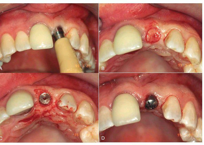 The simplest method of implant uncovering is the tissue punch. This method of uncovering is easy to perform, only minimally disturbs the tissue surrounding the implant, and produces minimal patient discomfort. To use this technique, the implant must be located with certainty below the tissue.