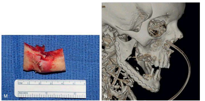 cont’d (M–N) Dental implant placement and reconstruction plate placement.