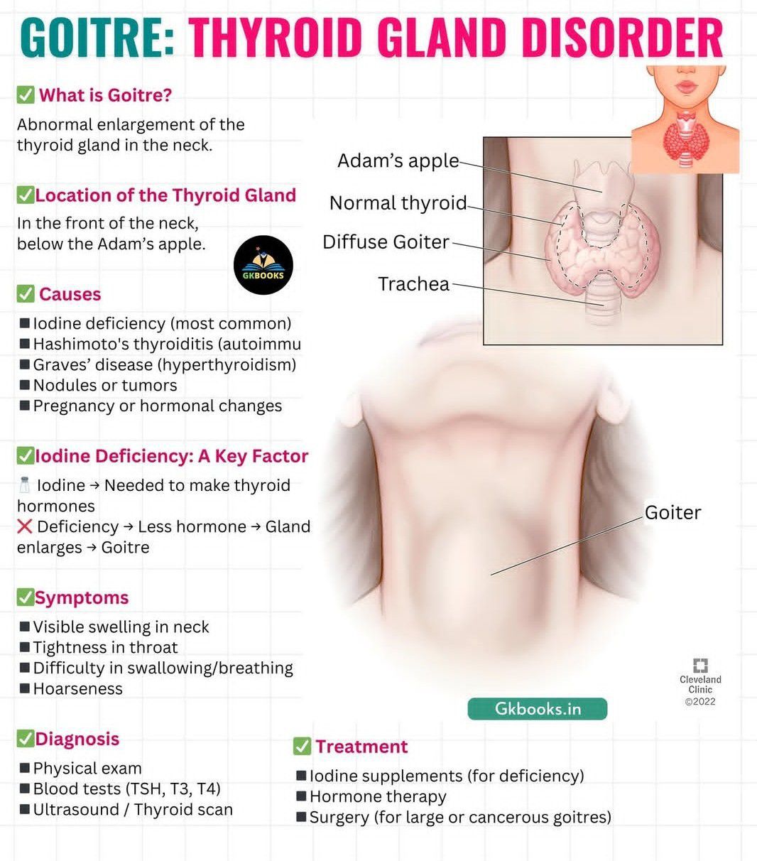 Goiter happens when your thyroid gland grows larger. It has several possible causes and may or may not be associated with abnormal thyroid hormone levels.
