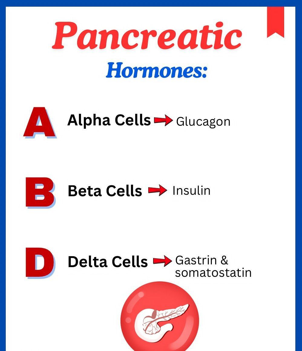 In pancreas, the endocrine portion is arranged as discrete islets of Langerhans, which are composed of five different endocrine cell types (alpha, beta, delta, epsilon, and upsilon) secreting at least five hormones including glucagon, insulin, somatostatin, ghrelin, and pancreatic polypeptide, respectively.