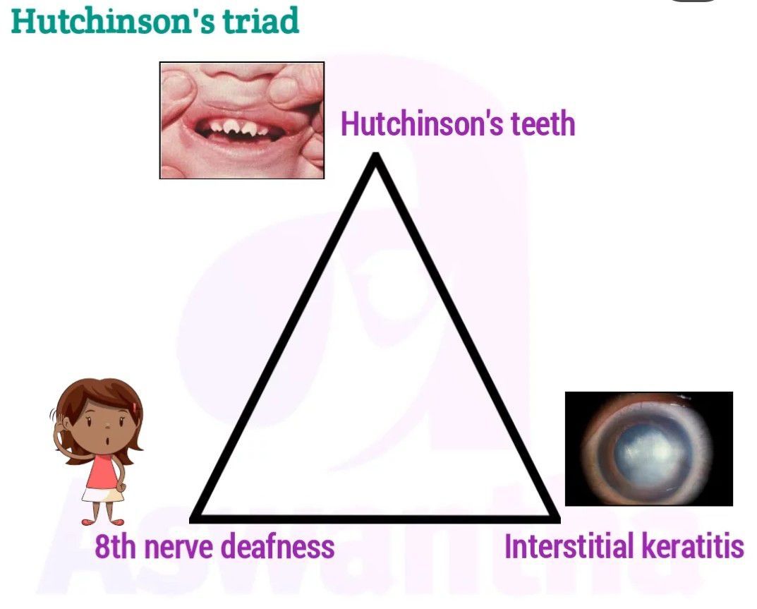 Sir Jonathan Hutchinson (1828–1913) from England described a triad in late congenital syphilis consisting of notched incisors, interstitial keratitis, and eighth cranial nerve deafness.