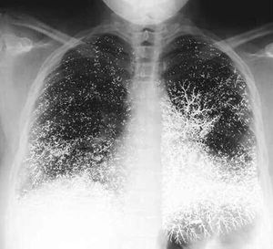 A strange view of the accumulation of mercury in pulmonary blood vessels.