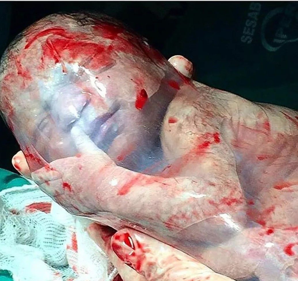 This incredible moment captures a rare en caul birth — where a baby is delivered still inside the fully intact amniotic sac. Normally, the “water breaks” when the amniotic sac ruptures at the start of labor, but in this case, the membrane stayed whole — cradling the baby in its protective fluid cocoon. The amniotic sac cushions, nourishes, and protects the fetus throughout pregnancy — and in en caul births, it offers a surreal glimpse into life just before the first breath.