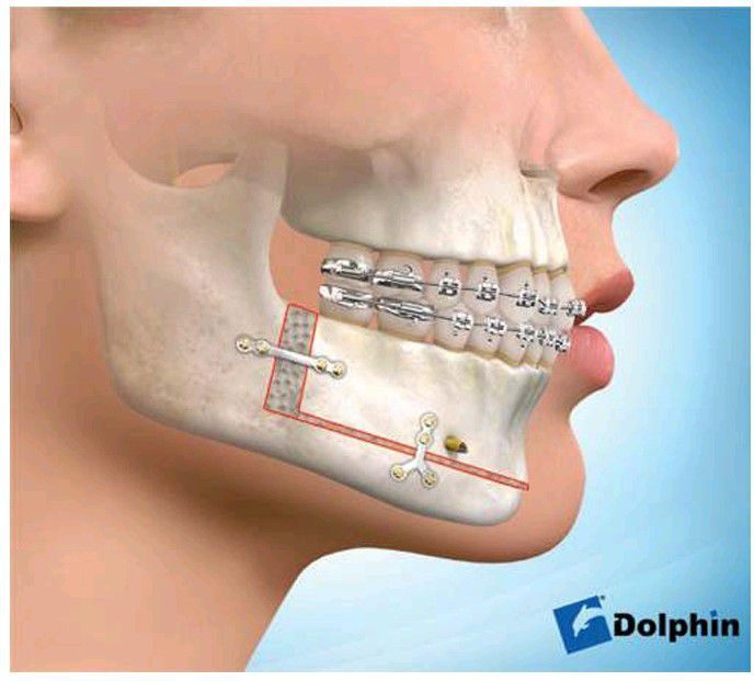 The dentoalveolar segment of the mandible is moved anteriorly, allowing correction of class II malocclusion without increasing chin prominence.