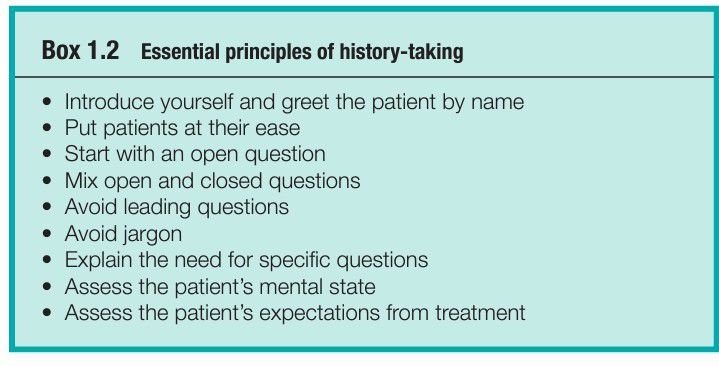 Questioning technique is most critical when eliciting any relevant social or psychological history or dealing with embarrassing medical conditions. It may be appropriate to delay asking such questions until after rapport has been gained. Some patients do not consider medical questions to be the concern of the dentist and it is important to give reasons for such questions when necessary.