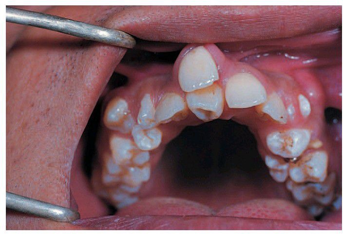 Maleruption of a midline tuberculate supernumerary and two supplemental premolars.
