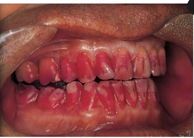 Accumulation of plaque stained after 24 hours by disclosing solution.