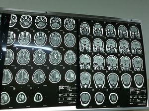 Cva (not bloody but embolism) I think, but schouldn't be the paralysis left bodyside, because of the CVA in the right side of the brain? (or do I read the mri the wrong way?)