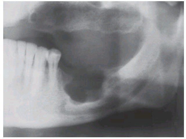 . This localised lesion (eosinophilic granuloma) shows the characteristic appearance of a well-defi ned radiolucency scooped out of the alveolar bone. The margin is corticated in places, but less well-defi ned elsewhere.