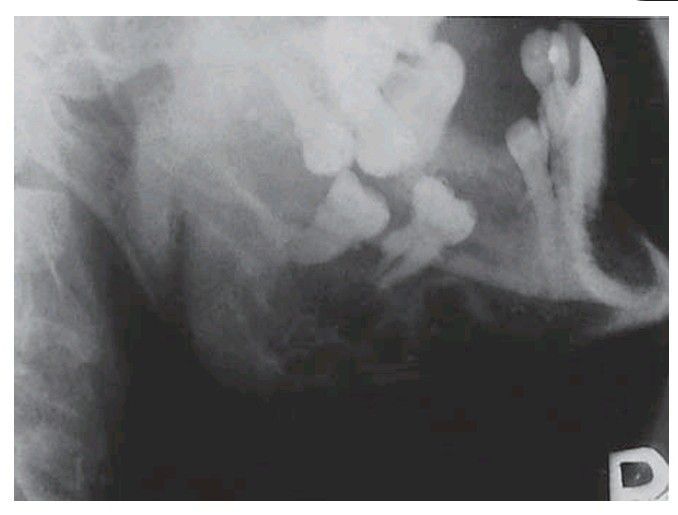 . A patient of 51 with hyperparathyroidism as a result of a parathyroid adenoma. There is an area of bone destruction simulating a multilocular cyst.