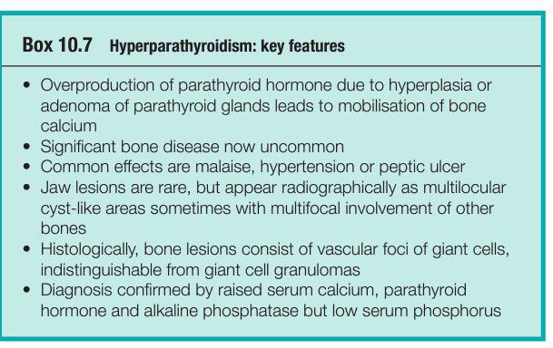 Primary hyperparathyroidism is usually caused by hyperplasia or adenoma of the parathyroids, but is uncommon. Overproduction of parathormone (PTH) mobilises calcium and raises the plasma calcium level.