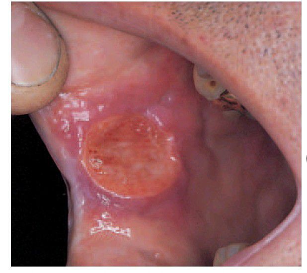 This large, deep ulcer with considerable surrounding erythema has been present for several weeks.