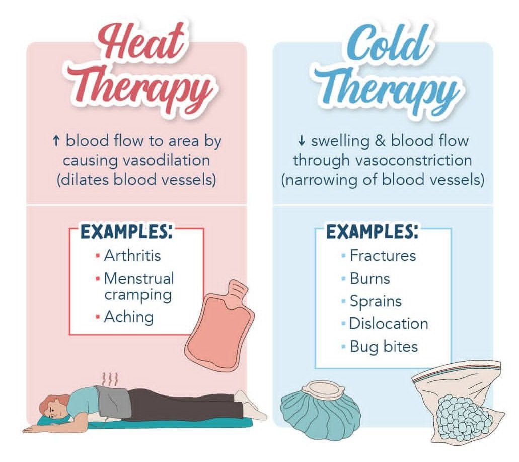 Heat and cold therapies are both used to manage pain and inflammation, but they work through different mechanisms and are best suited for different situations. Cold therapy (ice) is generally recommended for acute injuries and inflammation, while heat therapy is often better for chronic pain and muscle stiffness.