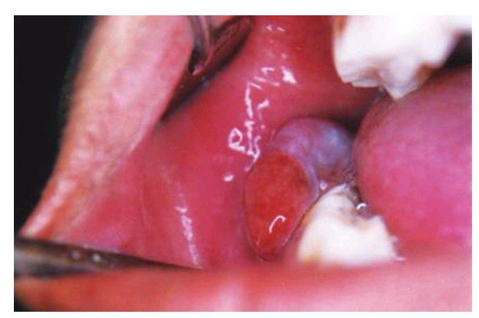 Peripheral giant cell granuloma showing growth in hour glass manner