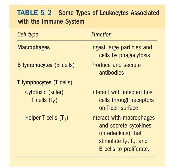The Immune Response Features a Specialized Array of Cells and Proteins Immunity is brought about by a variety of leukocytes (white blood cells), including macrophages and lymphocytes, all developing from undifferentiated stem cells in the bone marrow. Leukocytes can leave the bloodstream and patrol the tissues, each cell producing one or more proteins capable of recognizing and binding to molecules that might signal an infection