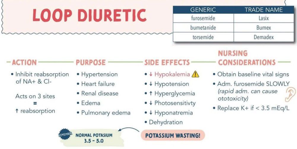 Loop diuretics are a class of potent diuretic medications that primarily work by inhibiting the reabsorption of sodium, potassium, and chloride in the kidney's loop of Henle, leading to increased urine production and fluid excretion. They are commonly used to treat conditions like heart failure, nephrotic syndrome, cirrhosis, and hypertension.