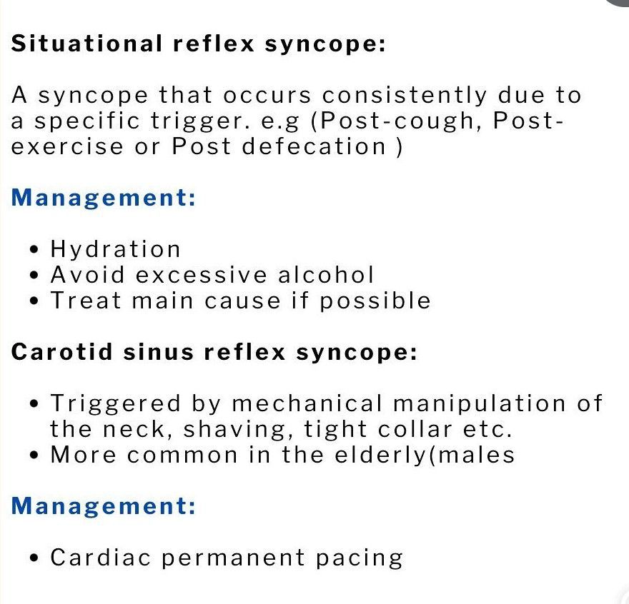 Situational syncope is a type of reflex syncope where a person faints due to a specific trigger or situation, such as coughing, urinating, defecating, swallowing, or even straining. The fainting is caused by a sudden, inappropriate drop in blood pressure and heart rate, but the specific mechanism varies depending on the trigger. Unlike other forms of reflex syncope caused by emotional stress, situational syncope is linked to a distinct physical act or event.