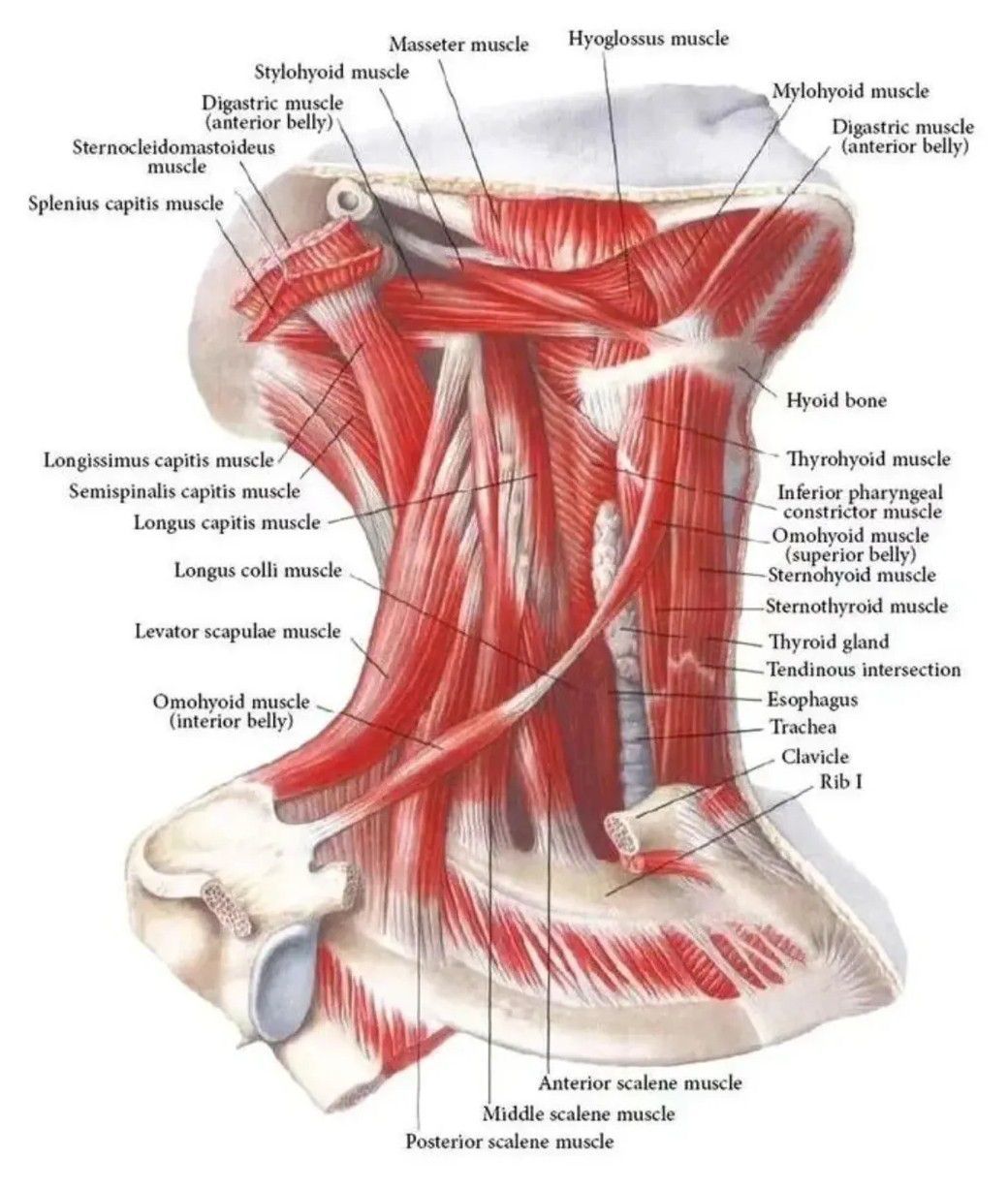 Neck muscles are voluntary skeletal muscles that attach the base of the skull to the torso, primarily responsible for supporting the head and enabling head movement, as well as functions like swallowing and speaking. They are broadly categorized by location, including anterior (front), posterior (back), and lateral (side) groups, with key muscles such as the Sternocleidomastoid, Trapezius, Scalenes, Suboccipitals, Deep Cervical Flexors, and Suprahyoid muscles serving vital roles in head and neck movement and stability.