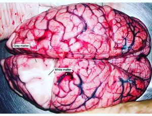 This is an incredible photo of a fresh brain removed during an autopsy, showing its Gray matter and White matter. •Gray matter & White matter of the brain: Gray matter makes up the outer cortex of the brain and surrounds the white matter. Looking at nervous tissue, there are regions that predominantly contain cell bodies and regions that are largely composed of just axons. These two regions within nervous system structures are often referred to as gray matter (the regions with many cell bodies and dendrites) or white matter (the regions with many axons). Gray matter is not necessarily gray. It can be pinkish because of blood content, or even slightly tan, depending on how long the tissue has been preserved. But white matter is white because axons are insulated by a lipid-rich substance called myelin. Lipids can appear as white ("fatty") material, much like the fat on a raw piece of chicken or beef. Actually, gray matter may have that color ascribed to it because next to the white matter, it is just darker—hence, gray. 📷•Medicogram• #letslearn #brain #neuroscience #neurosurgery #neurology #surgery #autopsy #medicine #health #trending #now #doctors #healthcare #medicogram