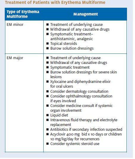 Erythema multiforme (EM) treatment focuses on relieving symptoms and addressing the underlying trigger, which often involves stopping a triggering medication, treating infections (like herpes or Mycoplasma pneumoniae), or using antihistamines for itching, steroid creams for inflammation, and anesthetic mouthwashes for painful sores, with hospitalization and IV fluids needed for severe cases (erythema multiforme major/Stevens-Johnson syndrome). Prophylactic antivirals (like acyclovir) are used for frequent herpes-related recurrences.